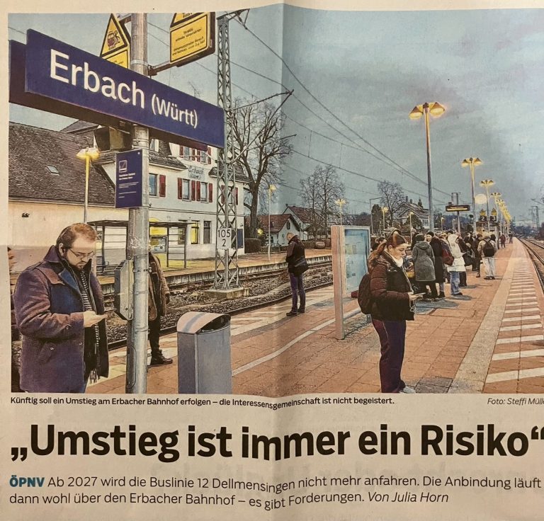 Ab 2027 wird die Buslinie 12 Dellmensingen nicht mehr anfahren. Die Anbindung läuft dann wohl über den Erbacher Bahnhof....